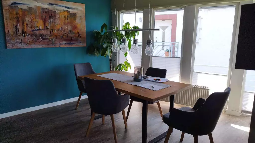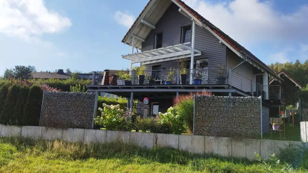 Ein rund herum stimmiges und durchdachtes Konzept für eine junge Familie, die sich hier wohl fühlen wird. Der Ausblick vom überdachten Balkon über das Ruhrtal ist einzigartig.